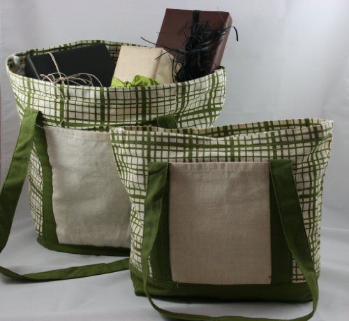 Green Plaid Reusable Canvas Shopping Bags, One Each Large and Small Review